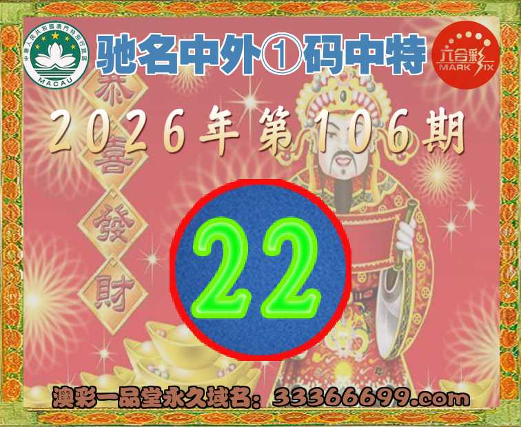 106期:『驰名中外』 ①码中特22】开:22