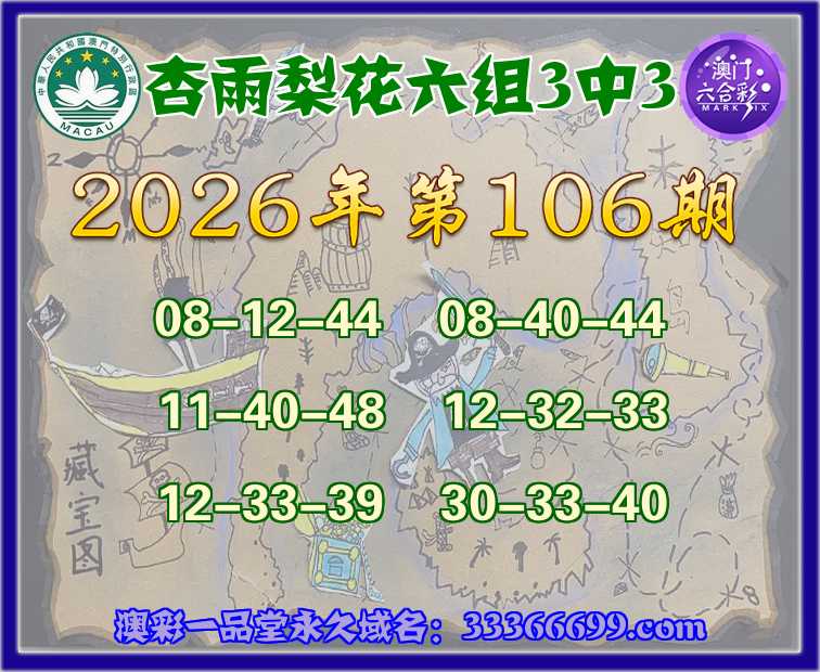 主题: 107期:澳彩一品堂◆【杏雨梨花】【六组3中3】◆爆庄猛料